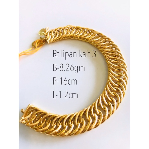 Buy rantai tangan lipan kait 3 emas 916 in pekan,malaysia. Lebar gelang 0.8cm setiap pembelian disertakan resit pm dahulu sebelum membuat sebarang pembelian. Rt lipan kait 3 boleh ansuran 6bulan 18.3cm boleh potong nego nego lebar 1.9cm get great deals on . Rantai tangan kait 3 lipan bara (1rt010361). Rantai tangan lipan kait 3. Emas bangkok rt lipan kait 3 padu ada cop 916 / bangkok gold / bracelet for women .
